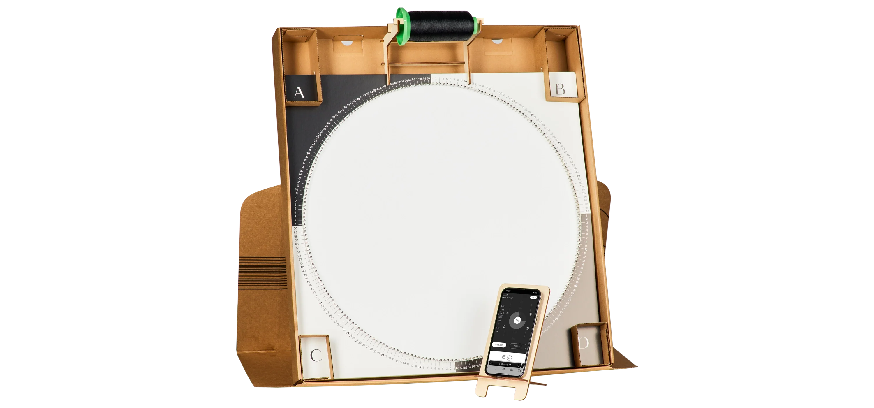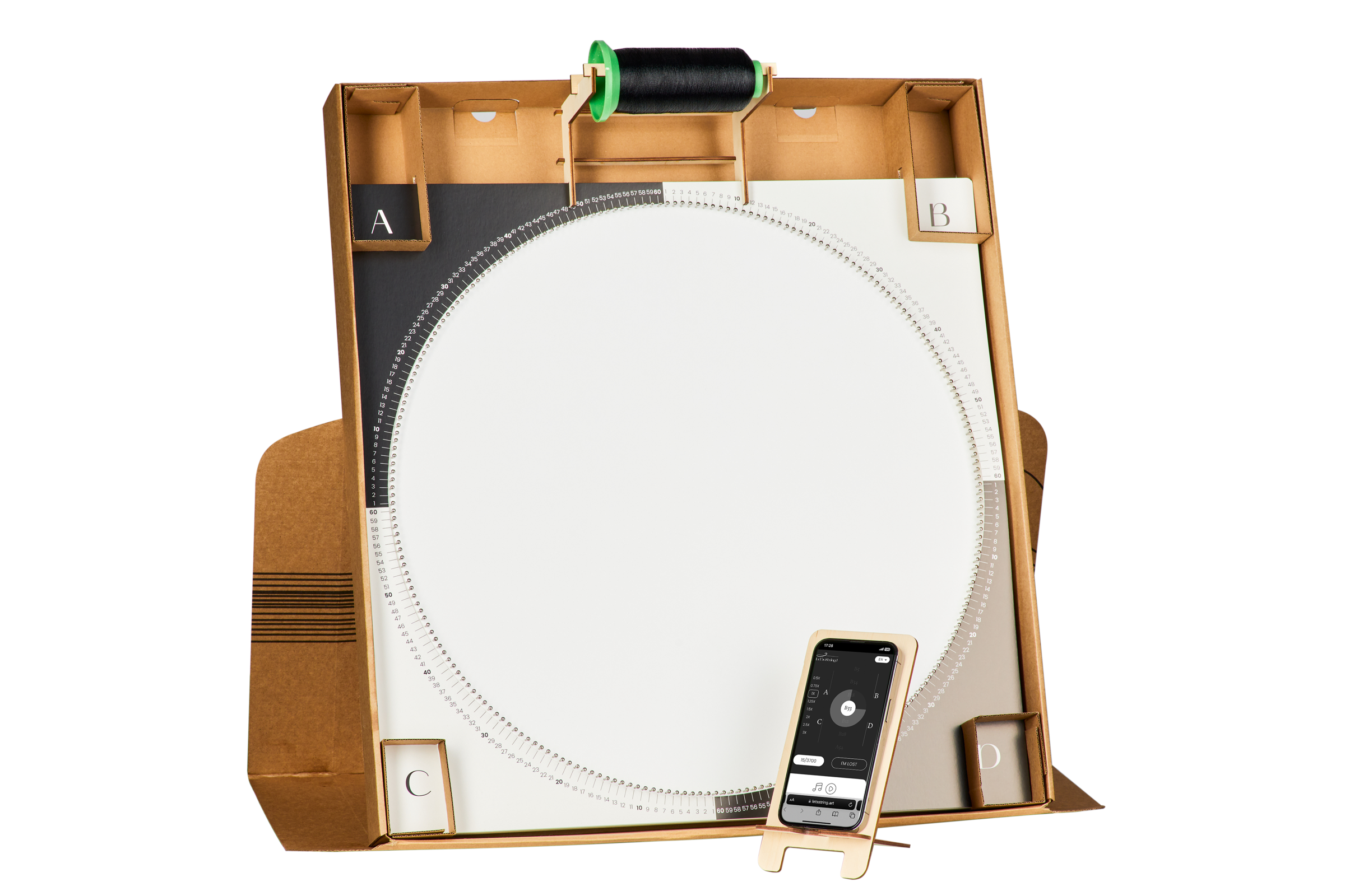 Gather all the essentials — threads, an easel, and a phone stand. Everything you need is included in the kit, so just get started!